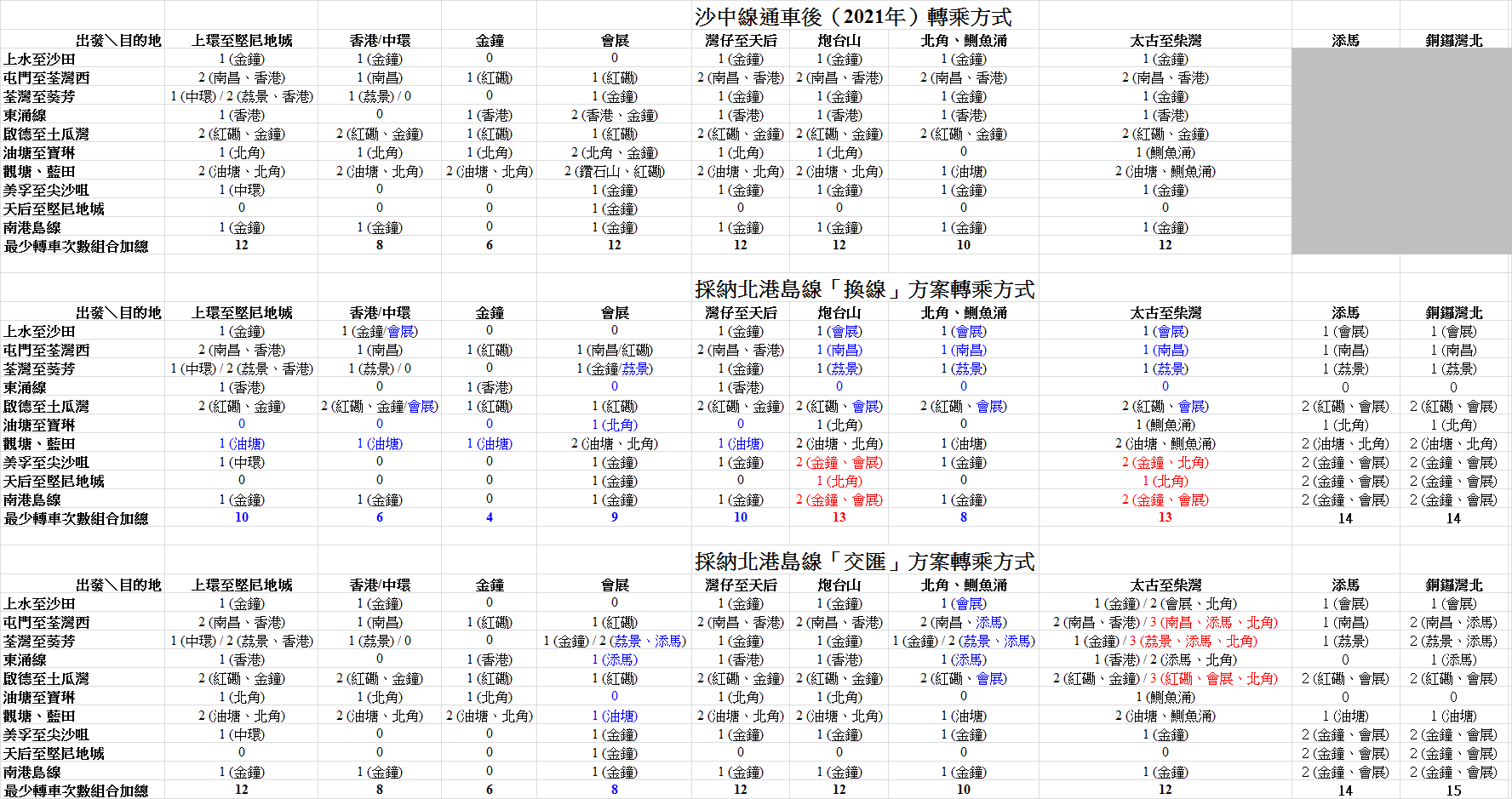 找回數年前的拙作(如有粗疏之處,還請指正),用以補充上文「換線」方案更能直接紓緩金鐘站、北角站及港島線壓力的理由。