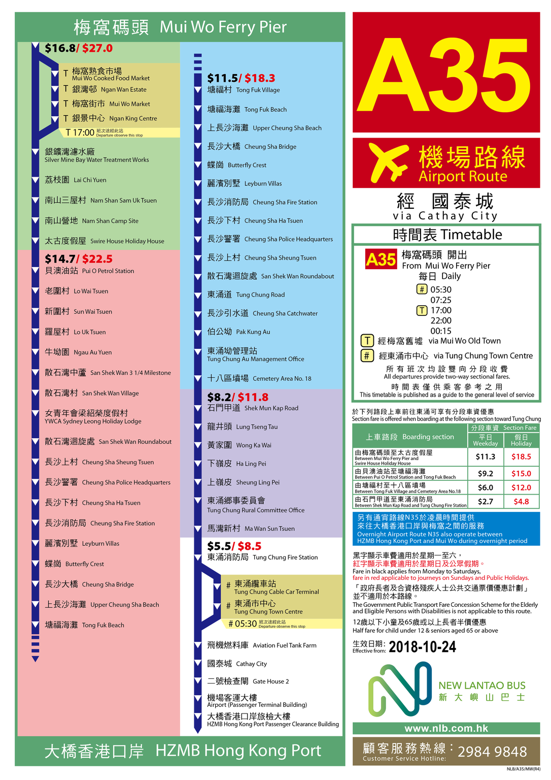 每30-60分鐘一班,額外的班次從大橋口岸直達東涌道