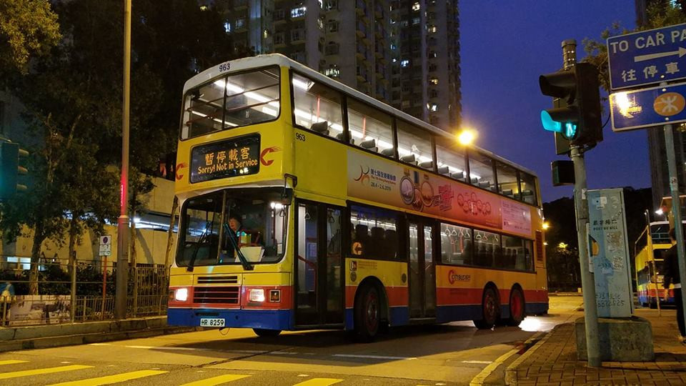城巴 Volvo Olympian 最後兩強,行車証今天到期的#963傍晚完成洗衣場完工接送服務柯打後返回第一城,再駛回西九廠。