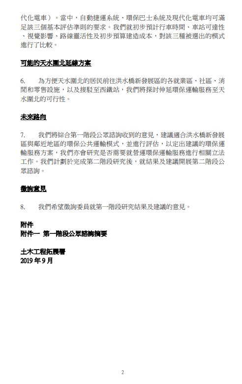 土木工程拓展署完成了洪水橋新市鎮環保連接系統的首階段研究, 初步定出了建議走線, 及三種建議形式, 有關文件已經上屯門區議會, 下星期五將討論, 簡述內容如下: