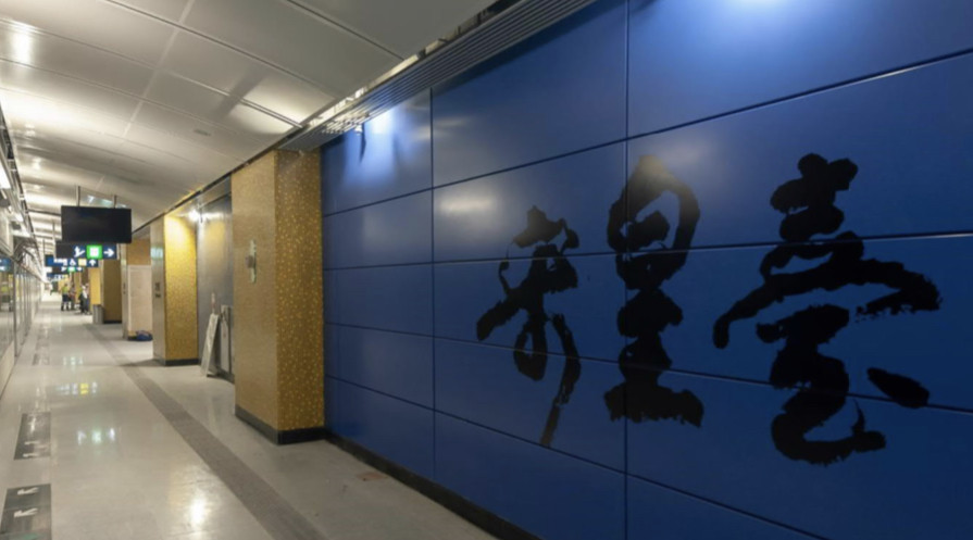 原來宋皇臺站除咗有深藍色焗漆板之外,仲有紫藍色紙皮石