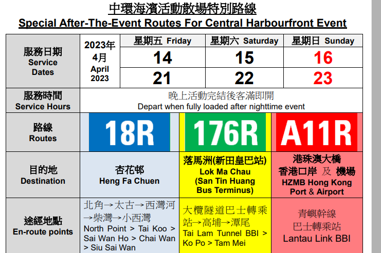 新聞稿咁講: *4月21至23日服務有待運輸署批准