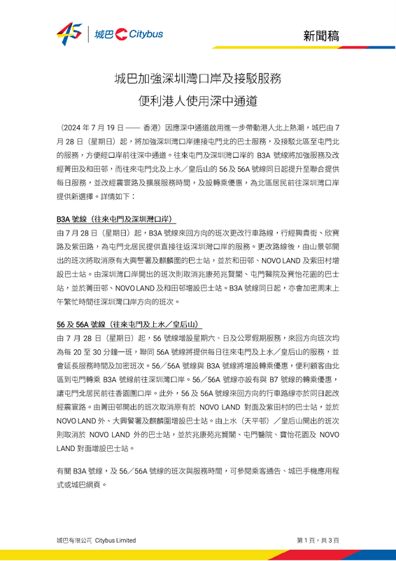 1. 56/A 繞經建生及屯門醫院,延長服務時間及加班