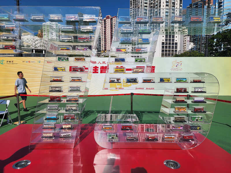 維園巴士展|巴士模型酷熱下熱熔‎  車身變形‎  運輸署安排移走展品