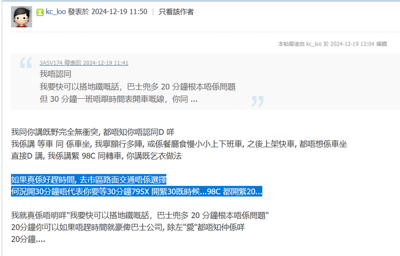 我係講 等車 同 係車坐, 我寧願行多陣, 或係餐廳食慢小小上 ...