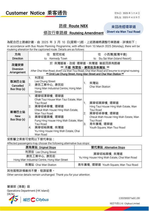 「N8X兜耀東、取消N8」你呢個Presentation方法唔夠好、城巴唔喜歡 ,應該係「N8X併入N8,N8總站由灣仔延伸至堅尼地城」咁講就好聽得多 !