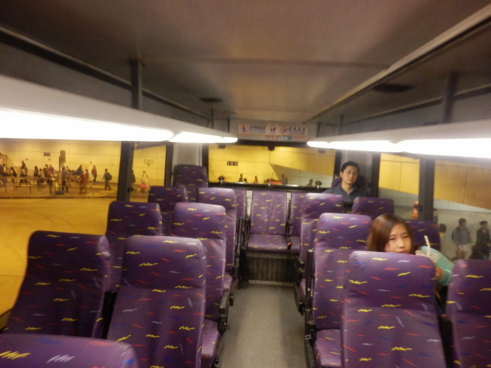 排隊人太多,所以無機會揀位,雖然唔計車頭四個位(果四個位係咪同一般舊Flyer一樣系Fainsha?),座位編排其實同龍運5XX一樣【起碼涼過之後搭嘅龍運同車型HU413(#215)@E31】,不過見到冷氣槽裡面有行李架,同埋窗簾,感覺已經高級好多
