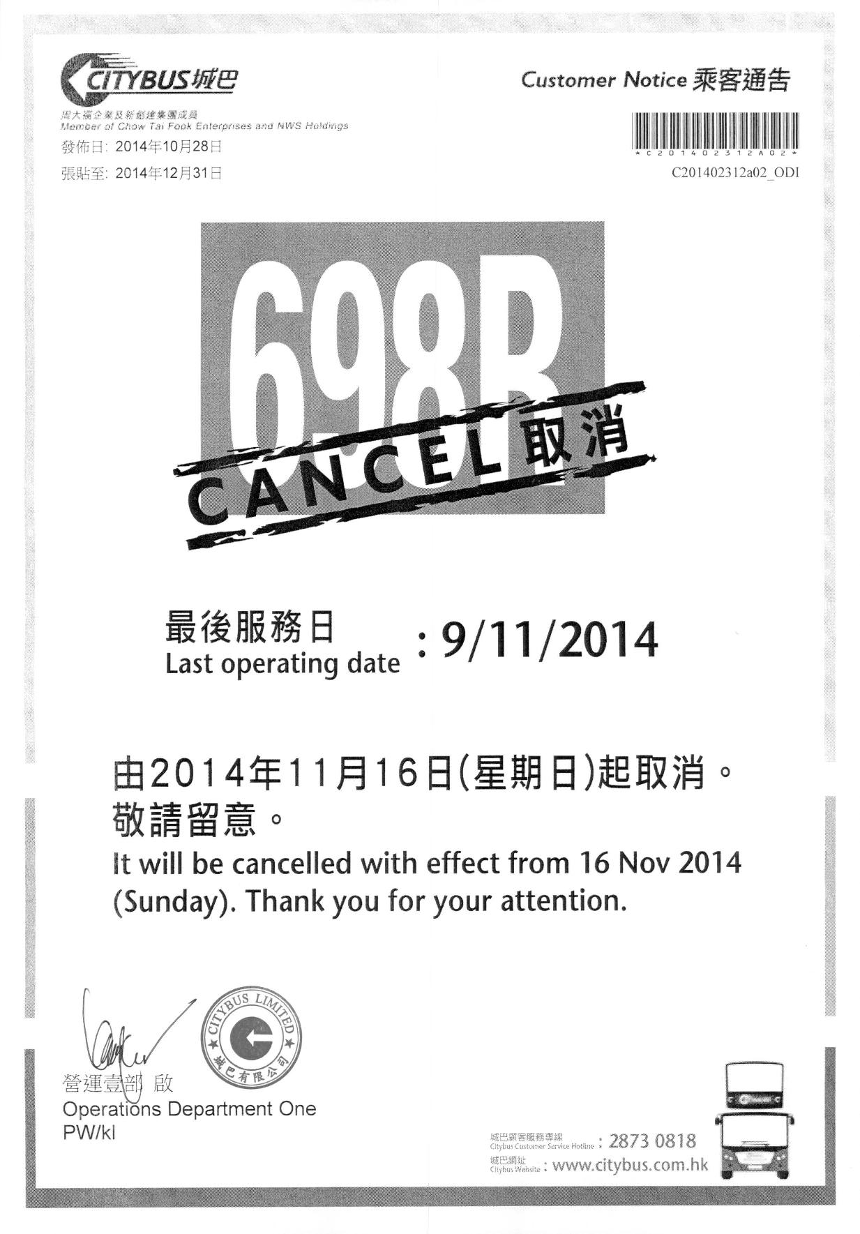 其實698R這條線,最好交由比新巴經營,柴廠派車,
