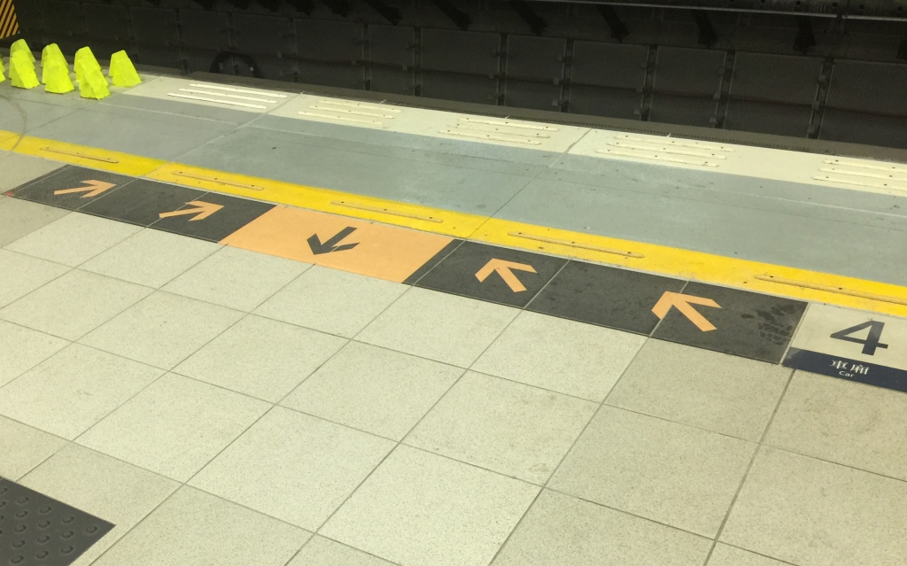 呢隻同對面1號月台唔同款,似係臨時貼(對面1號月台果隻係粒粒防滑面,即係馬鐵用開果隻),