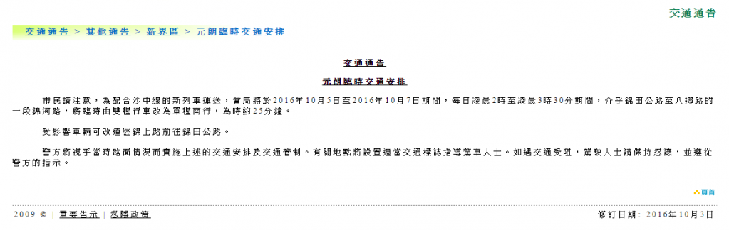 運輸署交通通告