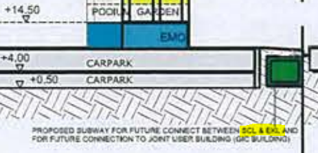 圖則上連接鑽石山站同G/IC大樓的行人隧道, 剖面圖有說明表示是是用來連通沙中線車站、東九龍線車站及G/IC大樓